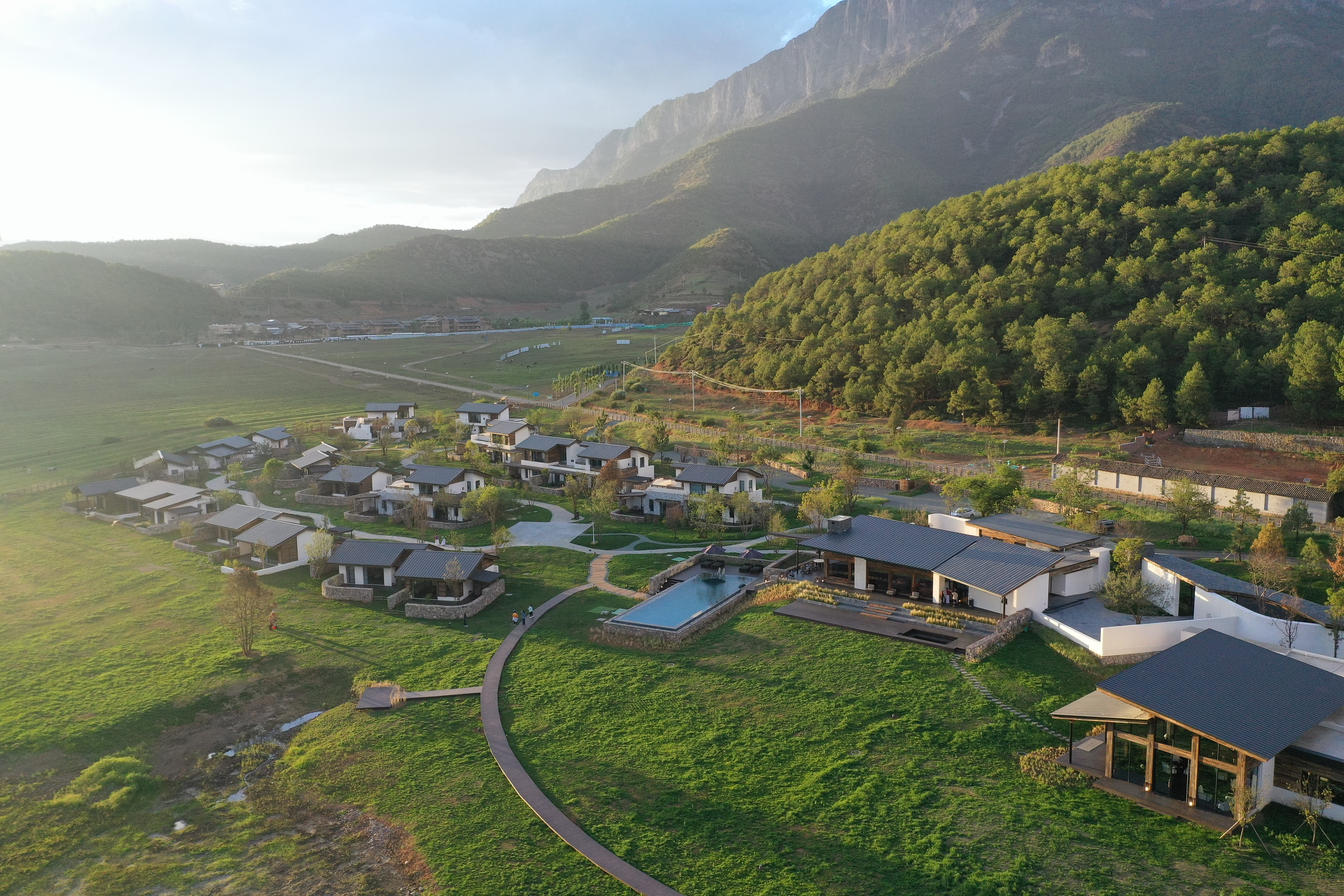 嵐岳酒店占地面積60余畝,客房總數(shù)33間,以傳統(tǒng)聚落分布形態(tài)為基礎(chǔ),參照摩梭人依山傍水的居住環(huán)境,以木頭和石頭為主元素打造自然建筑群落,蘇里瑪餐廳川滇菜系融合,從田間直達(dá)餐桌、中式傳統(tǒng)烹飪、西式擺盤藝術(shù)呈現(xiàn)精品度假的空間美感,將摩梭文化、田園牧歌風(fēng)光、現(xiàn)代時(shí)尚巧妙融合,構(gòu)建與自然環(huán)境完美融合的高品質(zhì)度假目的地。
