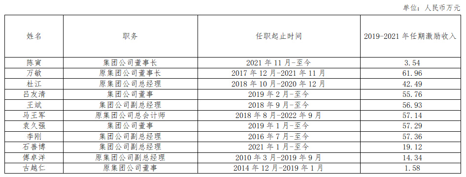 備注:上表披露信息為我公司企業(yè)負(fù)責(zé)人2019-2021年三年任期激勵(lì)收入(稅前)。