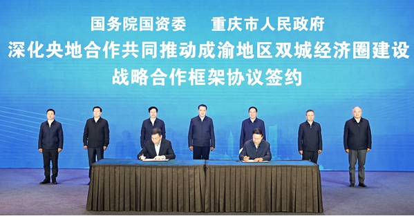 會(huì)上,重慶市委常委、常務(wù)副市長(zhǎng)陳鳴波介紹了重慶經(jīng)濟(jì)社會(huì)發(fā)展和成渝地區(qū)雙城經(jīng)濟(jì)圈建設(shè)情況,對(duì)深化重慶與央企合作提出建議。國(guó)務(wù)院國(guó)資委黨委委員、副主任袁野、趙世堂,國(guó)務(wù)院國(guó)資委黨委委員、副部長(zhǎng)級(jí)干部周?chē)?guó)平,重慶市領(lǐng)導(dǎo)張鴻星、羅藺、江敦濤、張安疆出席會(huì)議。國(guó)務(wù)院國(guó)資委與重慶市政府簽署戰(zhàn)略合作框架協(xié)議。兵器裝備集團(tuán)、國(guó)家電網(wǎng)、中國(guó)大唐、中國(guó)星網(wǎng)、中糧集團(tuán)、華潤(rùn)集團(tuán)、中國(guó)旅游集團(tuán)、招商局集團(tuán)、中國(guó)鐵建、中國(guó)物流等10家中央企業(yè)主要負(fù)責(zé)同志作了交流發(fā)言,充分表達(dá)了深化央企與重慶合作的愿望、提出了務(wù)實(shí)舉措。