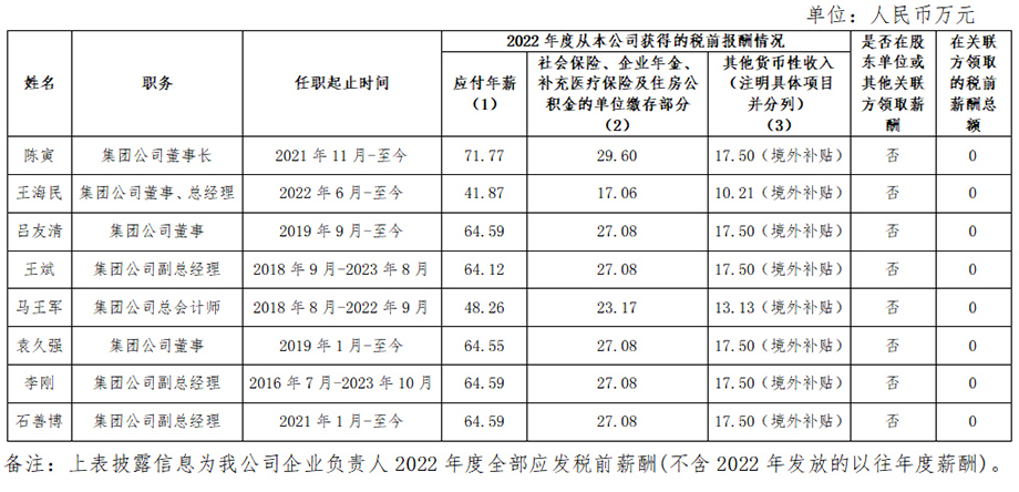 中國旅游集團(tuán)有限公司企業(yè)負(fù)責(zé)人2022年度薪酬情況