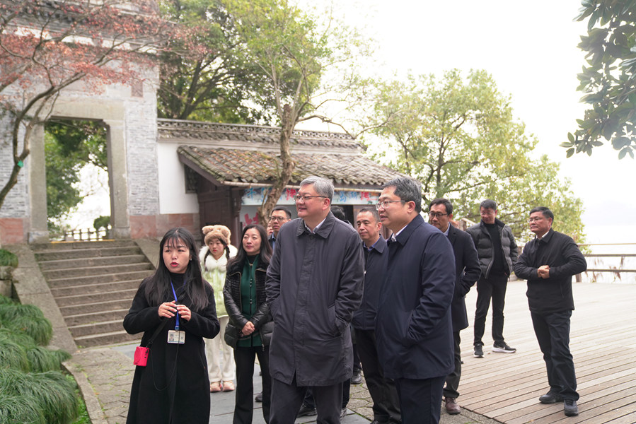 在千島湖,王總現(xiàn)場聽取了關(guān)于大排檔和秀水街兩個升級改造項目匯報,實地考察了中心湖區(qū)龍山島、梅峰島。調(diào)研過程中,王總就千島湖項目后續(xù)發(fā)展與淳安縣委書記楊建根、縣長王翀、副縣長姜君及縣文旅局、千島湖旅游集團等相關(guān)負責人進行交流。王總表示,千島湖資源稟賦獨特,旅游業(yè)基礎(chǔ)良好、知名度高,集團對千島湖項目高度重視,希望合資公司在淳安縣委縣政府的支持下,雙方共同發(fā)力,通過產(chǎn)品創(chuàng)新和文旅融合,挖掘在地文化,拓寬營銷渠道,做大做強千島湖IP。