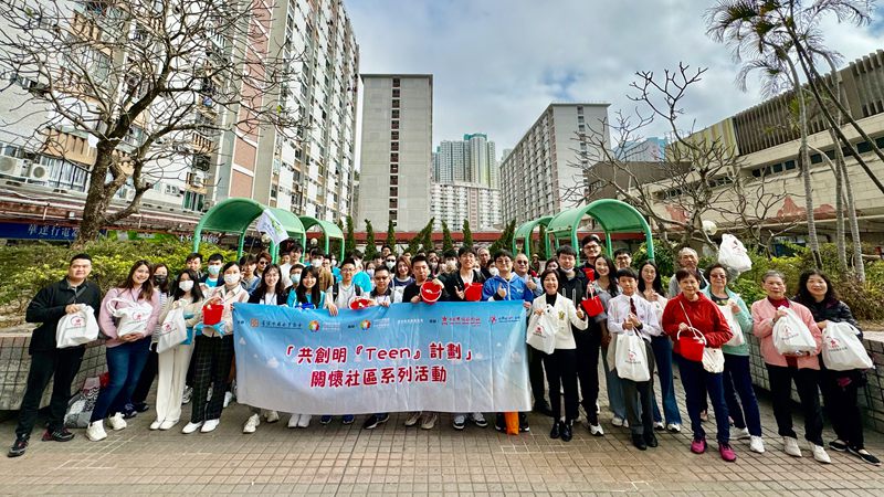 2月3日下午,集團組織百余名學員及友師參加香港特區(qū)政府第二期“共創(chuàng)明‘Teen’計劃”開展社區(qū)探訪活動,在集團區(qū)議員符碧珍服務的觀塘北社區(qū)探訪長者和殘弱人士,幫助其清潔家庭衛(wèi)生并派發(fā)了福袋。