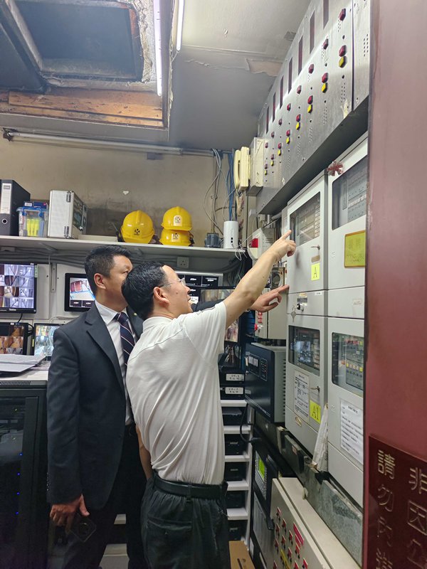 范云軍先后來到香港尖沙咀維景酒店、九龍維景酒店和旺角維景酒店,對客房、中西餐廳、廚房、監(jiān)控室、設(shè)備房、布草房、消控室、配電室等區(qū)域開展檢查。重點檢查了酒店廚房衛(wèi)生狀況、食品留樣及煮食器具的清洗消毒情況,以及安全出口及疏散通道是否暢通,應(yīng)急照明燈、滅火器、自動報警系統(tǒng)等安全、消防設(shè)施器材是否完好有效等情況。對有關(guān)設(shè)備的日常運行記錄、應(yīng)急處置方案及演練情況等進(jìn)行了安全檢查。