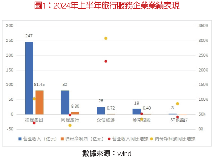 市場向在線旅游企業(yè)集中,OTA企業(yè)規(guī)模效應(yīng)進(jìn)一步加大。今年上半年,攜程、同程兩大OTA企業(yè)營收占本報(bào)告跟蹤的29家旅企營收的27.15%,其中, 攜程集團(tuán)實(shí)現(xiàn)營業(yè)收入247億元,同比增長21%,較2019年增長46%;歸母凈利潤81億元,同比增長103%,較2019年增長93%。同程旅行實(shí)現(xiàn)營業(yè)收入82億元,同比增長48%,較2019年增長140%;歸母凈利潤為8.3億元,同比增長13%,較2019年增長180%。國際化業(yè)務(wù)是支撐OTA企業(yè)業(yè)績?cè)鲩L的重要因素之一。二季度經(jīng)營數(shù)據(jù)顯示,攜程集團(tuán)國際OTA 平臺(tái)的總收入同比增長約70%;出境酒店和機(jī)票預(yù)訂已全面恢復(fù)至2019年疫情前同期的100%水平,顯著超越行業(yè)平均70%以上的國際航班恢復(fù)率。同程旅行國際機(jī)票預(yù)訂量創(chuàng)下歷史新高,同比增長160%, 國際酒店間夜數(shù)同比增長140%。平臺(tái)用戶量穩(wěn)步提升,市場下沉。同程旅行截至2024年6月30日止,12 個(gè)月實(shí)現(xiàn)年付費(fèi)用戶數(shù)2.28億,同比增長4.8%,其中居住在中國非一線城市注冊(cè)用戶數(shù)占87%以上。