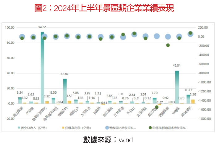 從營業(yè)收入來看,復(fù)星旅文[復(fù)星旅游文化度假資產(chǎn)管理中心即地產(chǎn)銷售、運(yùn)營收入為2.9億元人民幣,占總營收的3%]銷售能力最強(qiáng),2024上半年?duì)I收94.52億元,華強(qiáng)方特和宋城演藝分別營收32.67億和11.77億元。從盈利能力來看,宋城演藝盈利能力最強(qiáng),歸屬母公司股東凈利潤5.5億元,華強(qiáng)方特和復(fù)星旅文歸母凈利潤分別為3.51億元和3.22億元。海昌海洋公園、張家界、曲江文旅、西藏文旅仍處于虧損狀態(tài)。從同比增速來看,宋城演藝、長白山營收和歸母凈利潤較2023年同期增長率均超過50%。整體來看, 旅游市場回歸理性,景區(qū)類上市公司多數(shù)盈利能力較為一般,歸母凈利潤區(qū)間值為虧損千萬和盈利3億元之間,大多企業(yè)盈利同比2023年出現(xiàn)下降,整體形勢(shì)不樂觀。