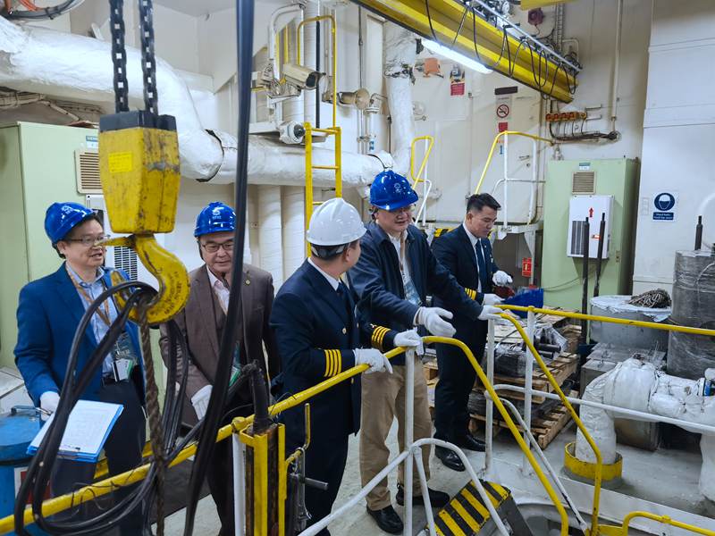 王海民仔細(xì)詢問了解各項航行設(shè)備運行狀況,深入機艙了解主機推進系統(tǒng)、輔機供電系統(tǒng)、造水系統(tǒng)、廢水處理系統(tǒng)以及壓載水系統(tǒng)等關(guān)鍵系統(tǒng)情況。