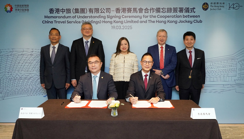 3月19日,集團(tuán)與香港賽馬會(huì)在跑馬地馬場(chǎng)簽署合作備忘錄,推動(dòng)賽馬旅游合作。香港特區(qū)政府文化體育及旅游局局長(zhǎng)羅淑佩、中聯(lián)辦經(jīng)濟(jì)部副部長(zhǎng)郭韶偉、香港旅游發(fā)展局主席彭耀佳、集團(tuán)董事長(zhǎng)王海民、馬會(huì)行政總裁應(yīng)家柏出席見證。集團(tuán)副總經(jīng)理簡(jiǎn)易與馬會(huì)客戶策略、體驗(yàn)及創(chuàng)新事務(wù)執(zhí)行總監(jiān)侯德洋代表雙方簽約。