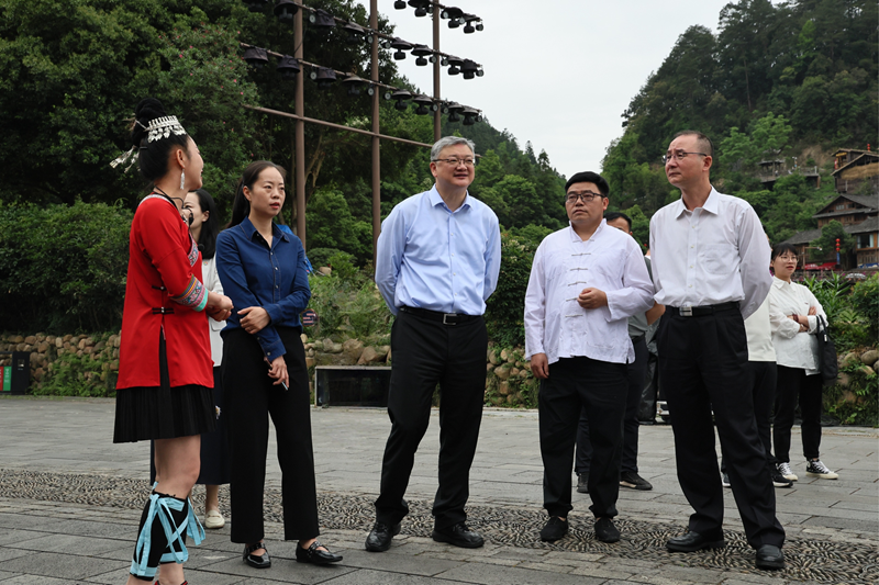 在黎平期間,王海民一行沿著總書記的考察路線,深入肇興侗寨調(diào)研侗族文化展示中心,侗鄉(xiāng)織、染、繡特色產(chǎn)業(yè)基地,集團(tuán)幫扶項(xiàng)目侗族大歌研學(xué)基地,詳細(xì)了解民族文化傳承、鄉(xiāng)村旅游產(chǎn)業(yè)帶動(dòng)和群眾受益增收等情況,并代表集團(tuán)領(lǐng)導(dǎo)班子看望慰問掛職干部。