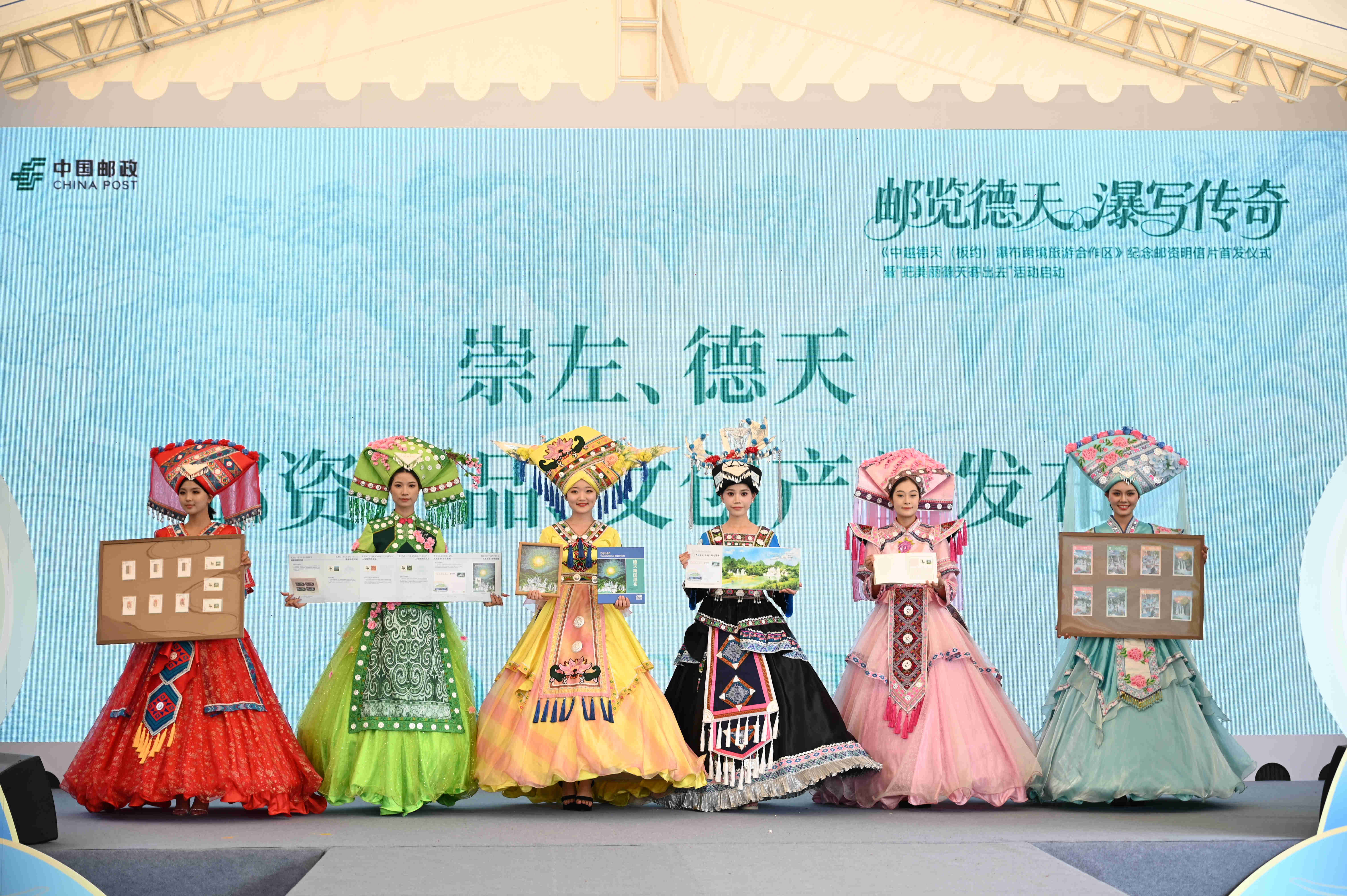 9月15日,《中越德天(板約)瀑布跨境旅游合作區(qū)》紀(jì)念郵資明信片首發(fā)儀式暨“把美麗德天寄出去”活動(dòng)在中旅國(guó)際所屬德天景區(qū)正式啟動(dòng),現(xiàn)場(chǎng)發(fā)布紀(jì)念郵資明信片等系列文創(chuàng)產(chǎn)品。