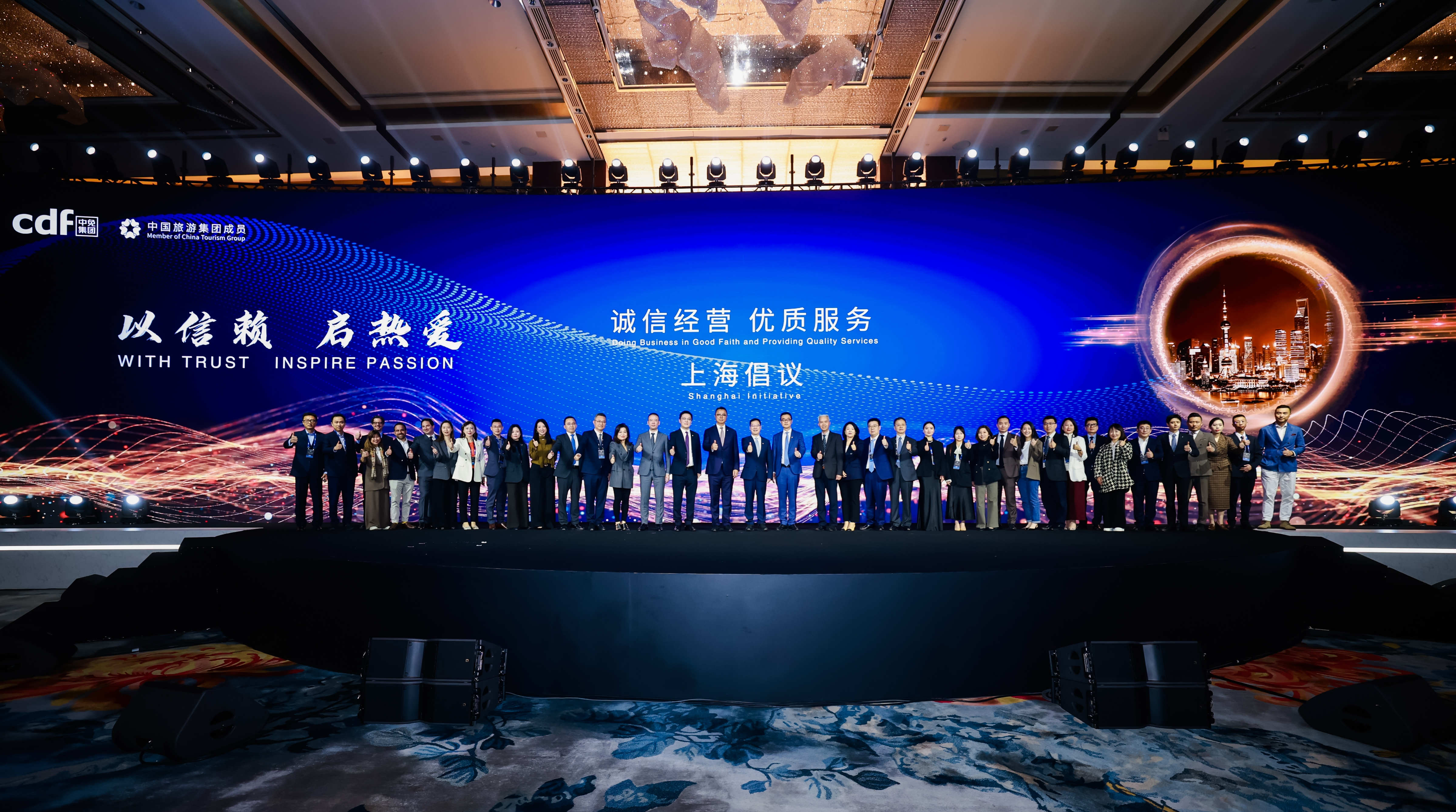 會議期間,在政府領(lǐng)導(dǎo)與行業(yè)同仁的見證下,中旅免稅攜手全球品牌商伙伴代表,發(fā)布“誠信經(jīng)營、優(yōu)質(zhì)服務(wù)”上海倡議,承諾守護(hù)消費信任、共筑行業(yè)健康生態(tài)。