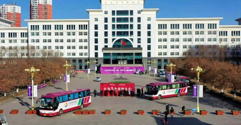 在出征儀式上,頒發(fā)紀(jì)念冊、授旗儀式等一系列現(xiàn)場活動過后,由承德市委有關(guān)領(lǐng)導(dǎo)宣布出征,參與儀式的領(lǐng)導(dǎo)和老師護(hù)送實習(xí)生們來到車前,目送同學(xué)們駛離學(xué)校。