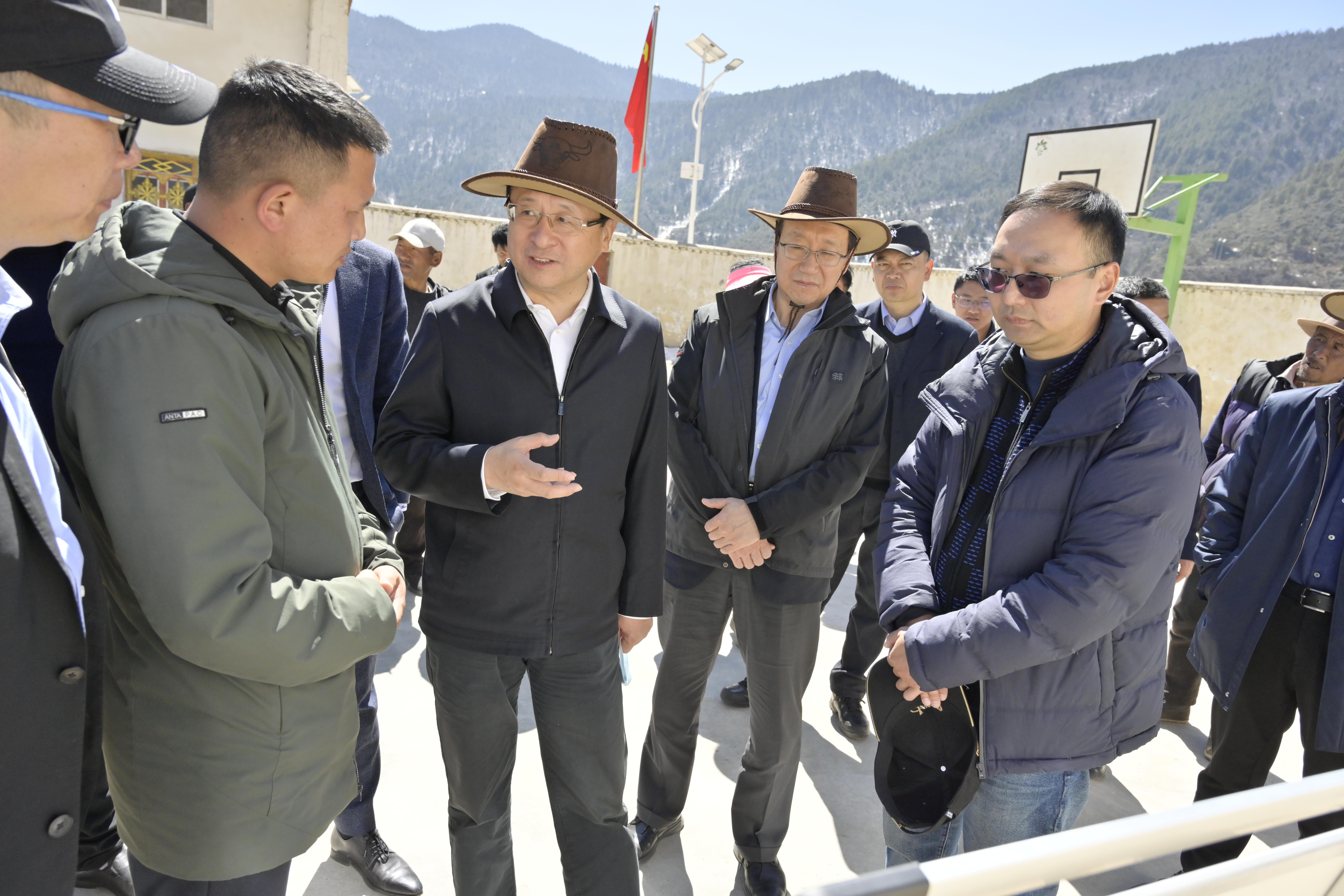 調(diào)研德欽縣時,陳董一行主要調(diào)研了德欽縣二小、“一縣一村”玉杰村美麗鄉(xiāng)村、霧濃頂、飛來寺等項目,詳細了解各項工作開展情況,并與有關部門負責人就學校發(fā)展硬實力、提升軟實力、深化推動旅游產(chǎn)業(yè)高質(zhì)量發(fā)展等相關事宜進行了溝通交流。陳董要求,在玉杰村美麗鄉(xiāng)村項目的開發(fā)建設中,要充分利用現(xiàn)有資源,加強企地合作,共同做好美麗鄉(xiāng)村項目;要正確、科學處理好保護與開發(fā)的關系,堅持生態(tài)保護的底線和紅線;要深入研究、循序漸進發(fā)展玉杰村的特色產(chǎn)業(yè),推進文旅農(nóng)融合發(fā)展,促進當?shù)剞r(nóng)業(yè)產(chǎn)業(yè)興旺,鄉(xiāng)村治理有效,村民生活富裕。