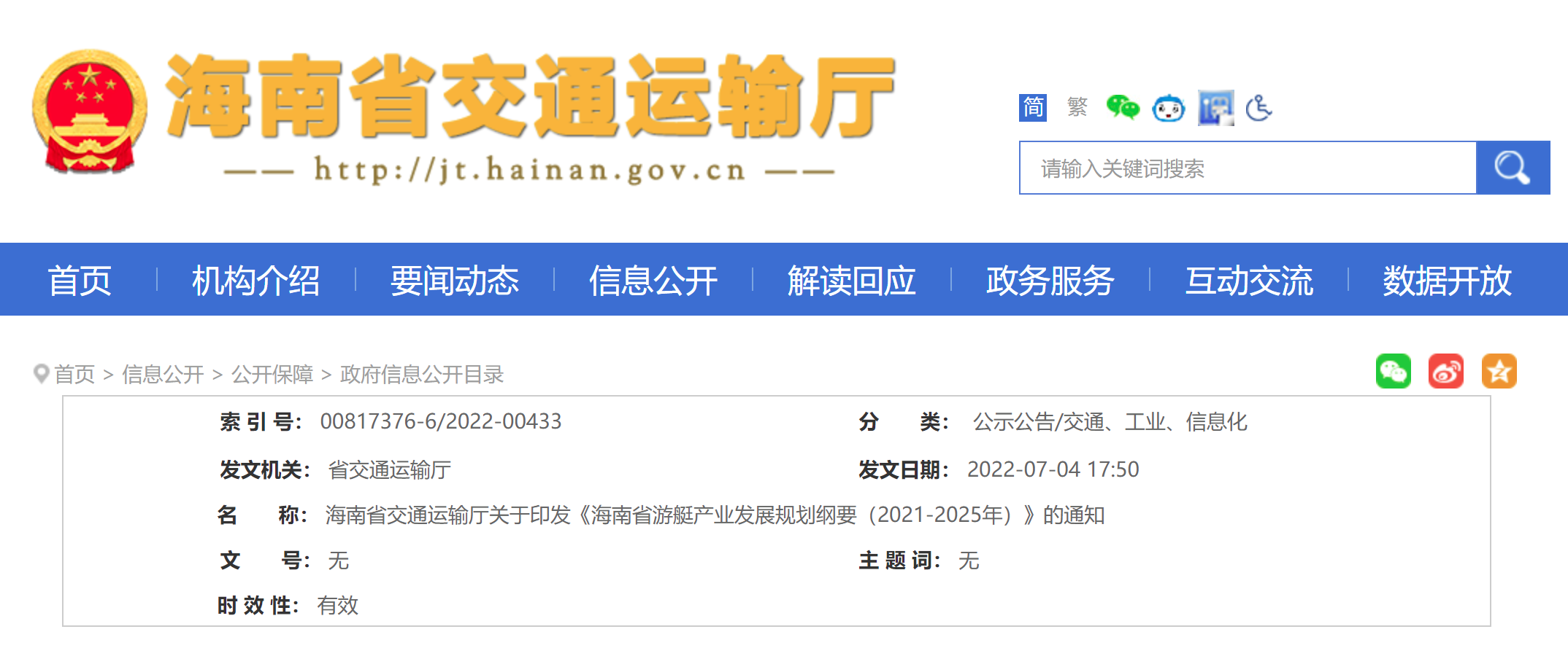 7月4日,海南省交通運(yùn)輸廳于印發(fā)《海南省游艇產(chǎn)業(yè)發(fā)展規(guī)劃綱要(2021-2025)》。