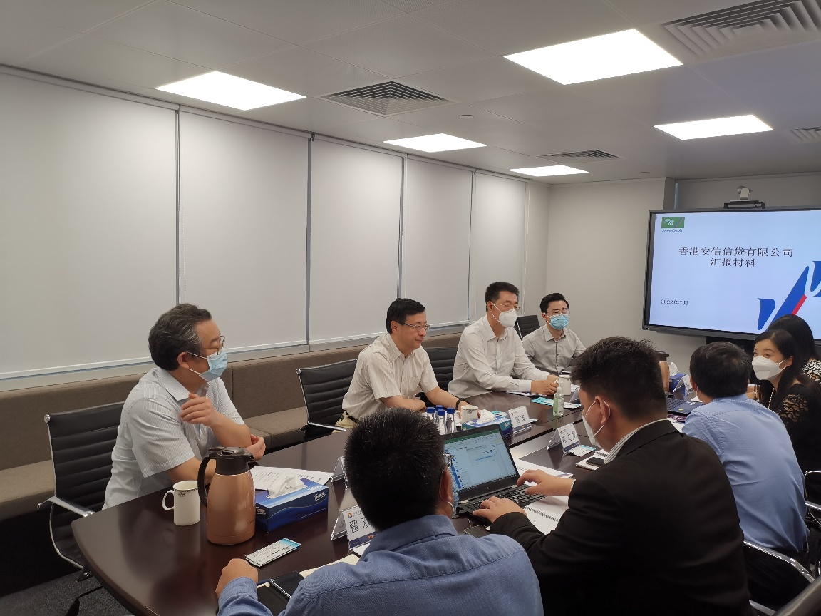 現(xiàn)場調(diào)研結(jié)束后,陳寅董事長與香港安信管理層進行了座談交流。會上,香港安信就公司基本情況、業(yè)務發(fā)展、產(chǎn)品創(chuàng)新、風險管理以及2022年上半年經(jīng)營情況等方面進行了匯報,陳寅董事長與與會人員就業(yè)務發(fā)展問題進行了充分交流。