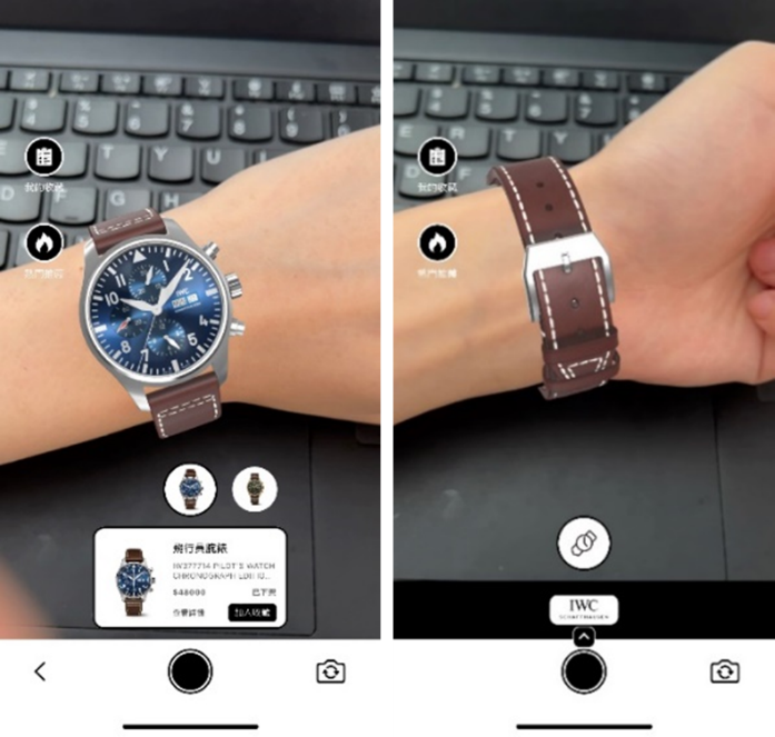 為了滿足來自世界各地的旅客需求,新增工具適用于不同的應(yīng)用平臺。除了試妝,新增的工具也可試戴手表,專為客戶行前計劃打造的,手表以AR效果呈現(xiàn)在手腕上,客戶可以仔細(xì)瀏覽手表細(xì)節(jié),如果客戶喜歡手表,可以加入購物車并提前預(yù)定,再于抵達(dá)時到店內(nèi)查看。